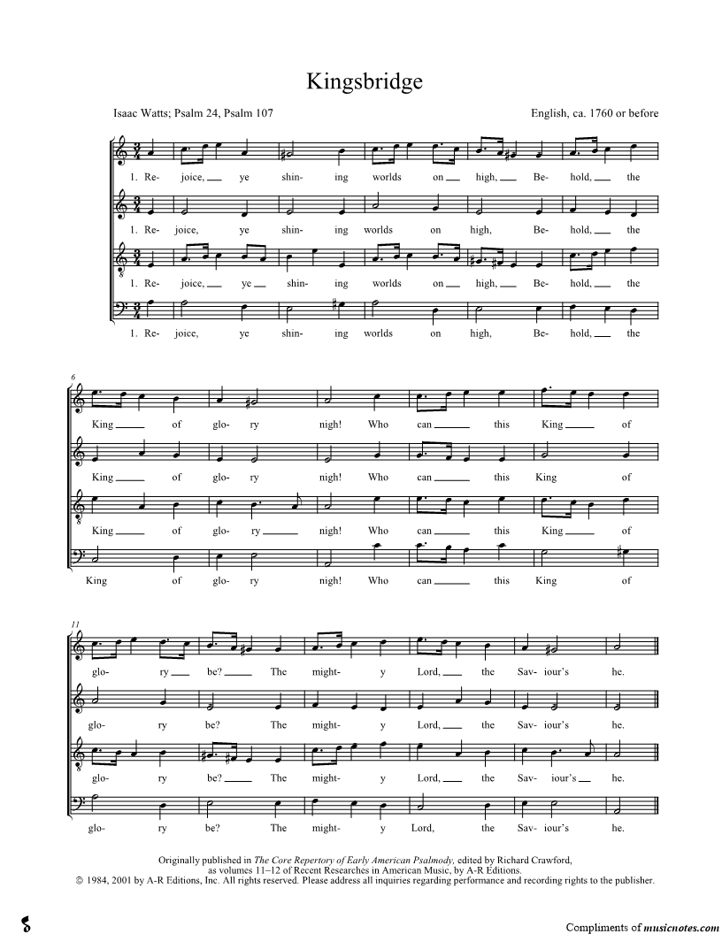 Rejoice, ye shining worlds on high, Behold, the King of glory nigh! |
