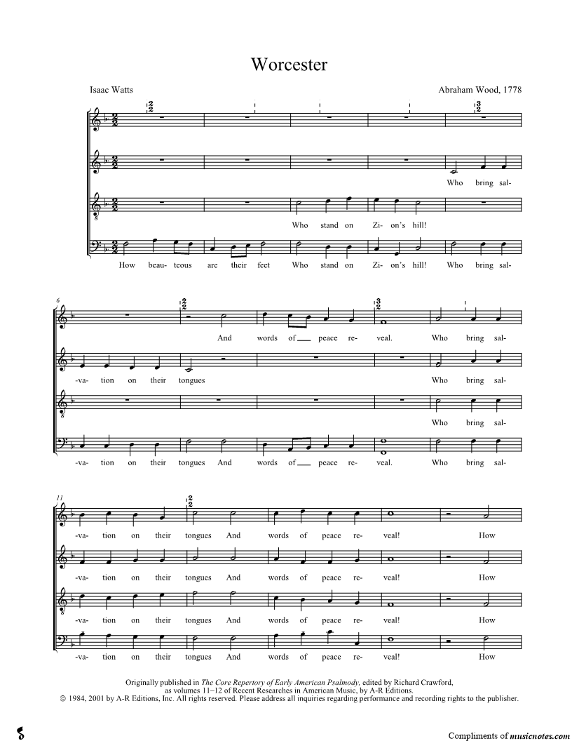 How beauteous are their feet, Who stand on Zion's hill! Who bring salvation on their tongues And words of peace reveal. |
