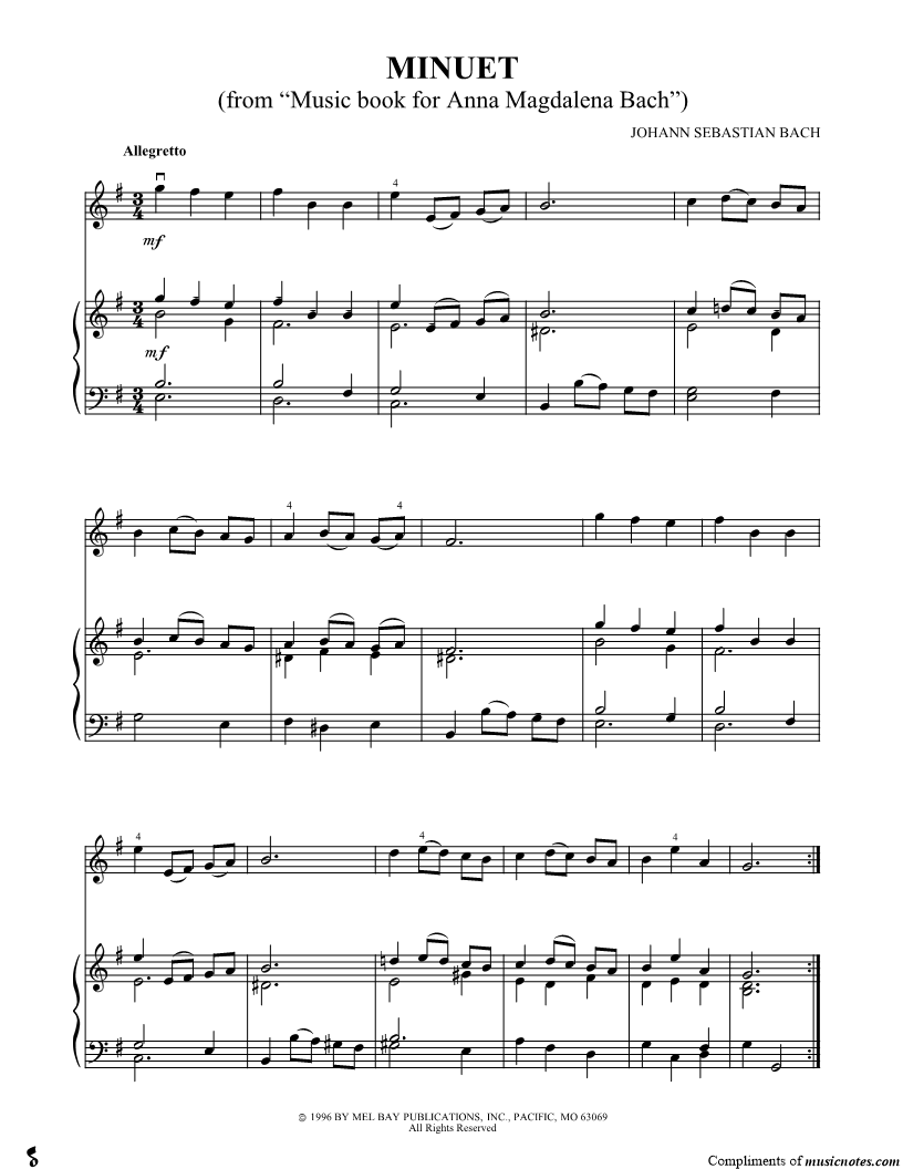 Menuet No. 5 in G Minor, from Notebook for Anna Magdalena - Piano Accompaniment |