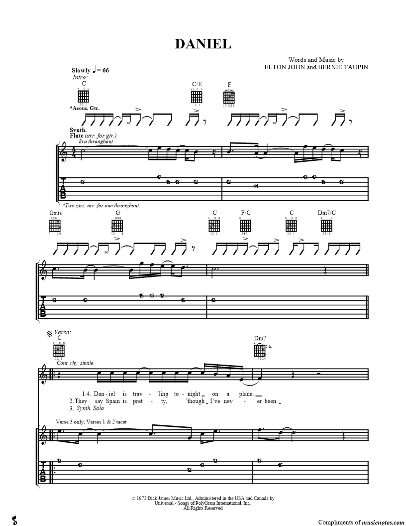 Guitar Tab Guitar/Vocal |