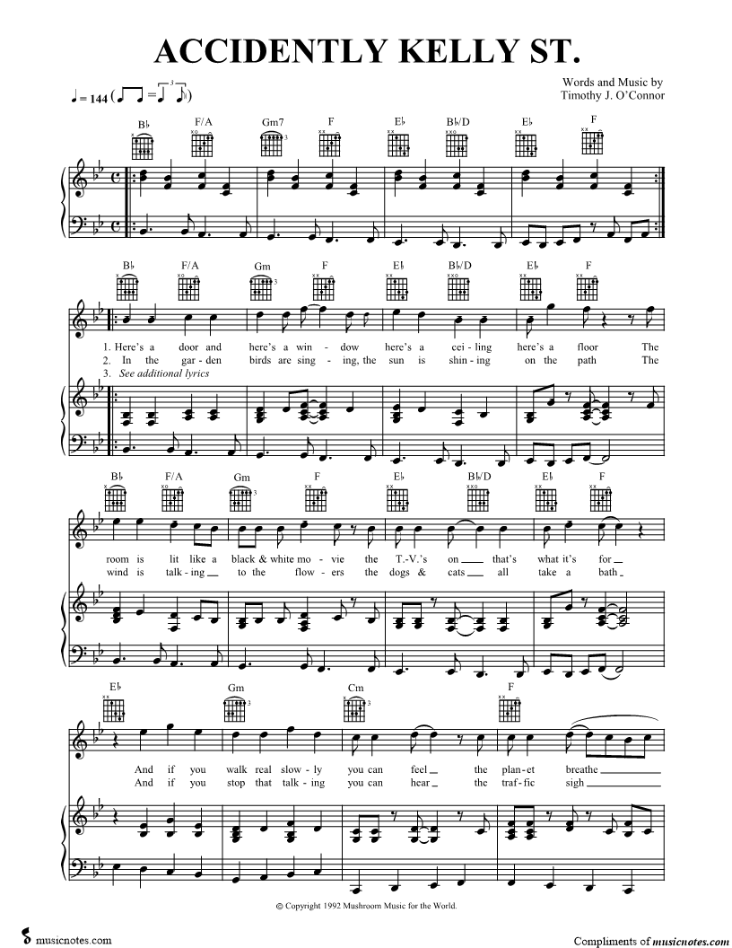 Here's a door and here's a window here's a ceiling here's a floor The room is lit like a black & white movie the T.V.'s on that's what it's for And if you walk real slowly you can feel the planet breathe there's no nee |