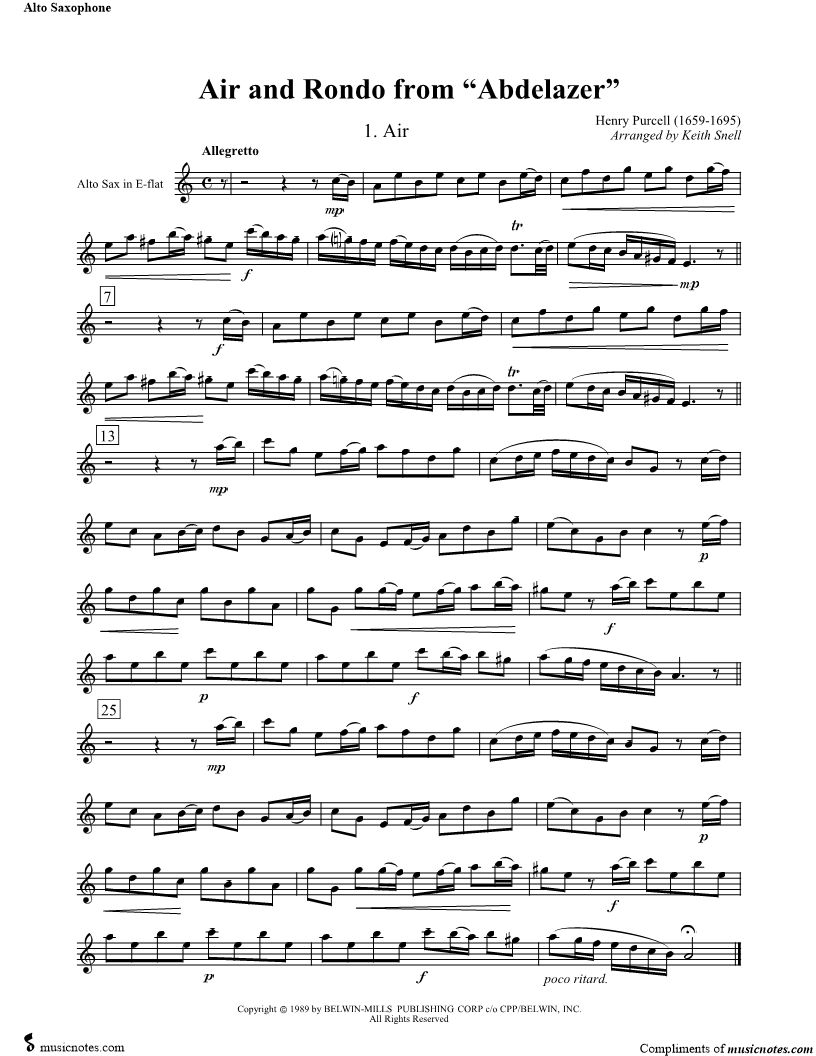 Collection: Air and Rondo from "Abdelazer" - Alto Saxophone & Piano