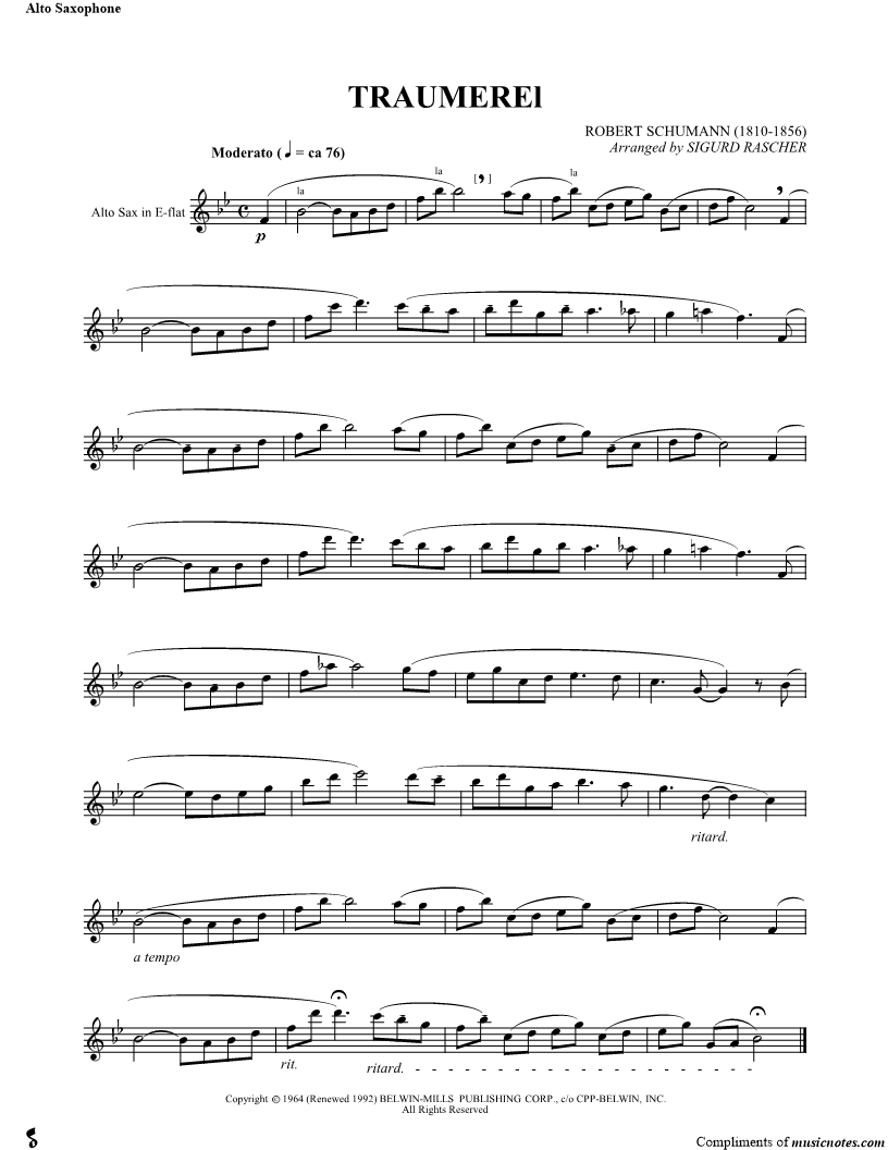 Kinderszenen, Op. 15, No. 7: Träumerei - Alto Saxophone |