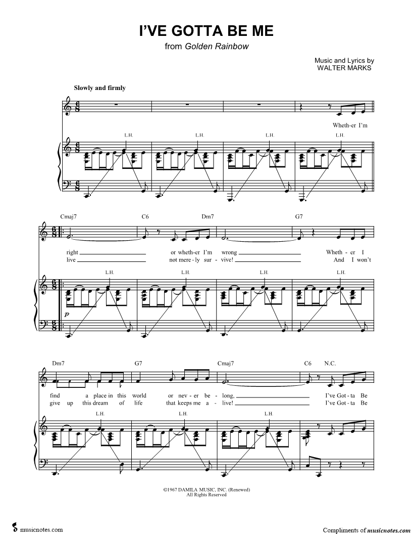 Whether I'm right or whether I'm wrong Whether I find a place in this world or never belong, Gotta Be Me! |