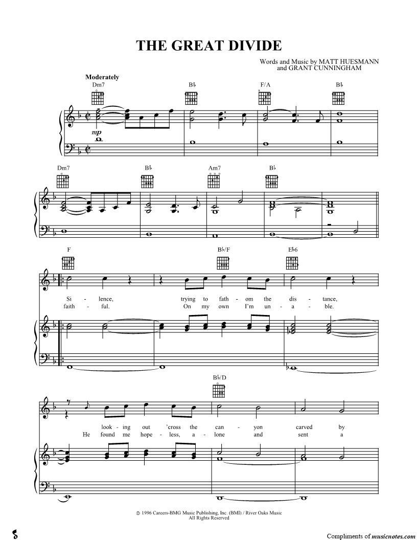 Voice, range: D4-G5 Piano, range: C2-Bb5 Guitar | |