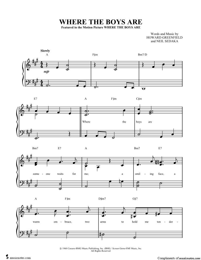 Where the boys are someone waits for me; a smiling face, a warm embrace, two arms to hold me tenderly. |