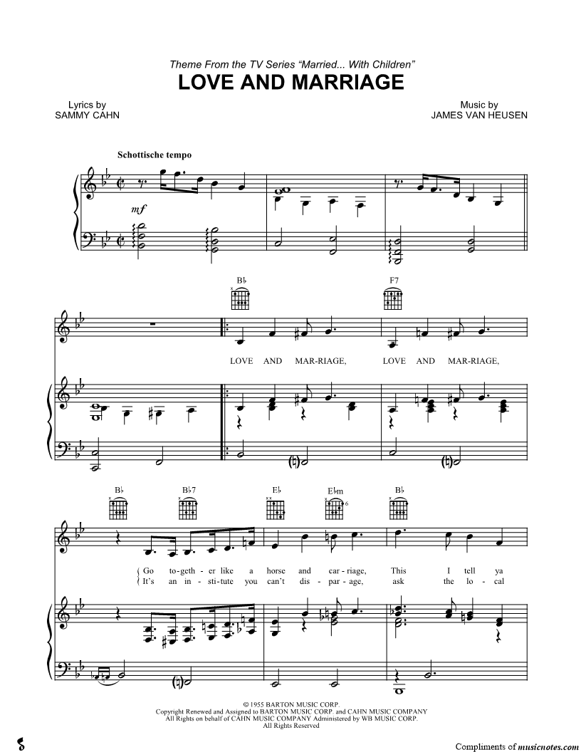 Love and marriage, love and marriage, go together like a horse and carriage, |