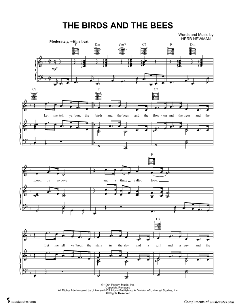 Let me tell ya 'bout the birds and the bees and the flowers and the trees and the moon up above and a thing called love Let me tell ya 'bout the stars in the sky and a girl and a guy and the way they could kiss, on a n |