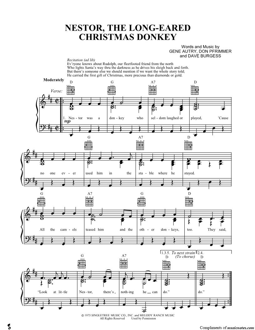 Nestor was a donkey who seldom laughed or played, 'Cause no one ever used him in the stable where he stayed. |
