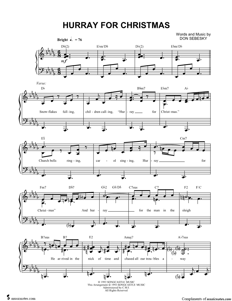Snowflakes falling, children calling, "Hurray for Christmas." |