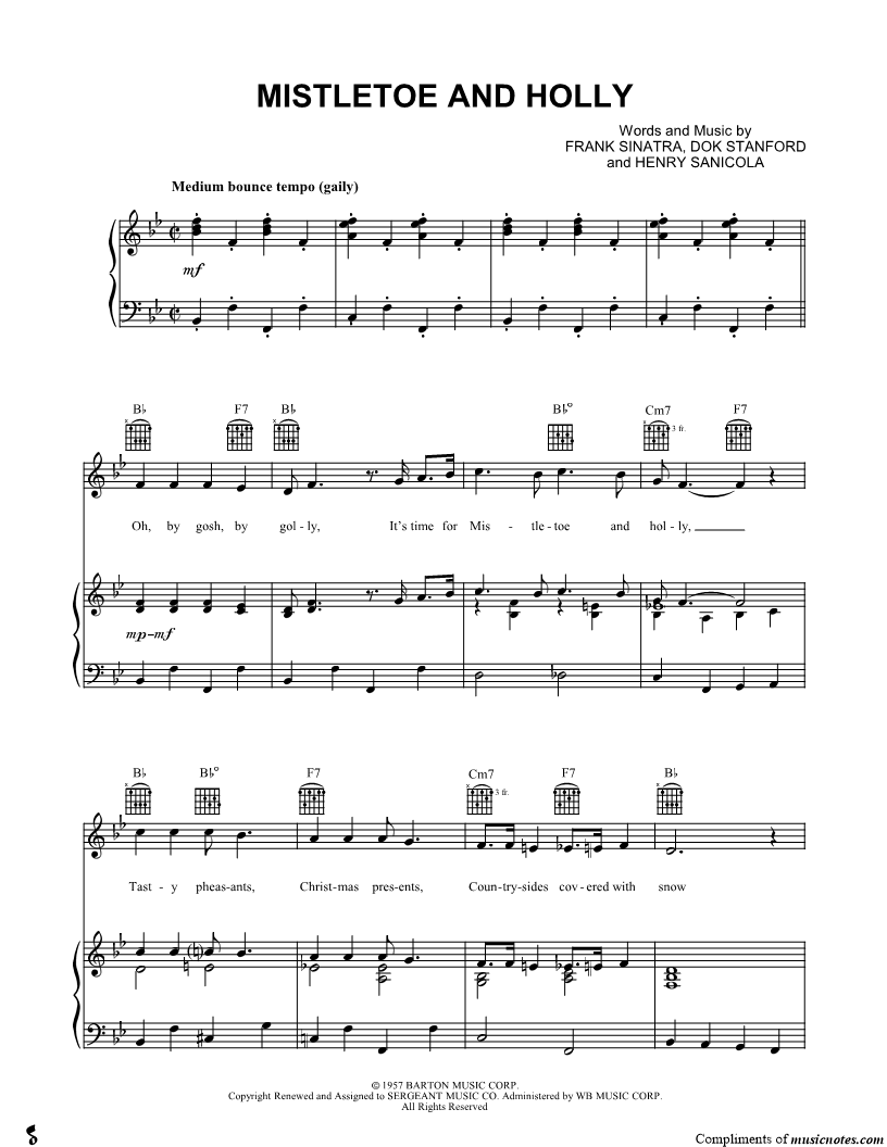 Oh, by gosh, by golly, It's time for mistletoe and holly, |