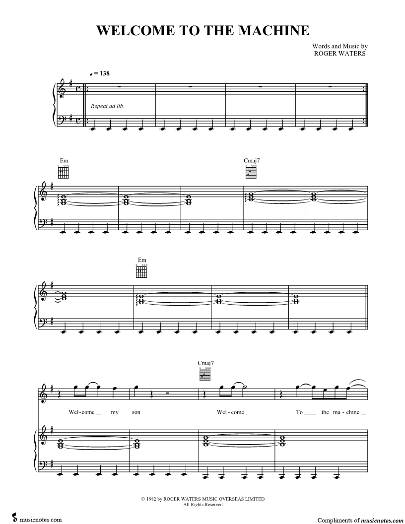 Wel come my son Welcome To the machine Where have you been It's all right, we know where you've been. |