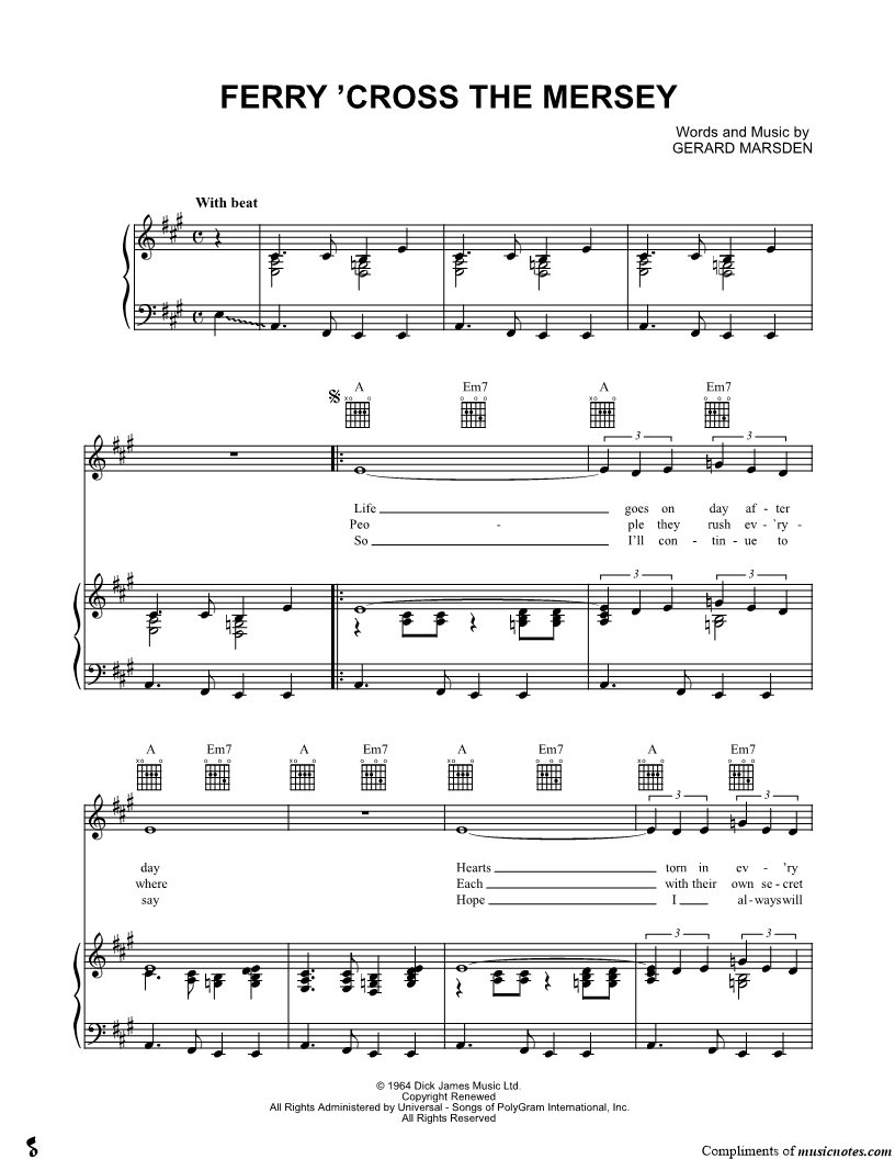 Life goes on day after day Hearts torn in ev'ry way So ferry cross the Mersey 'Cos this land's the place I love |
