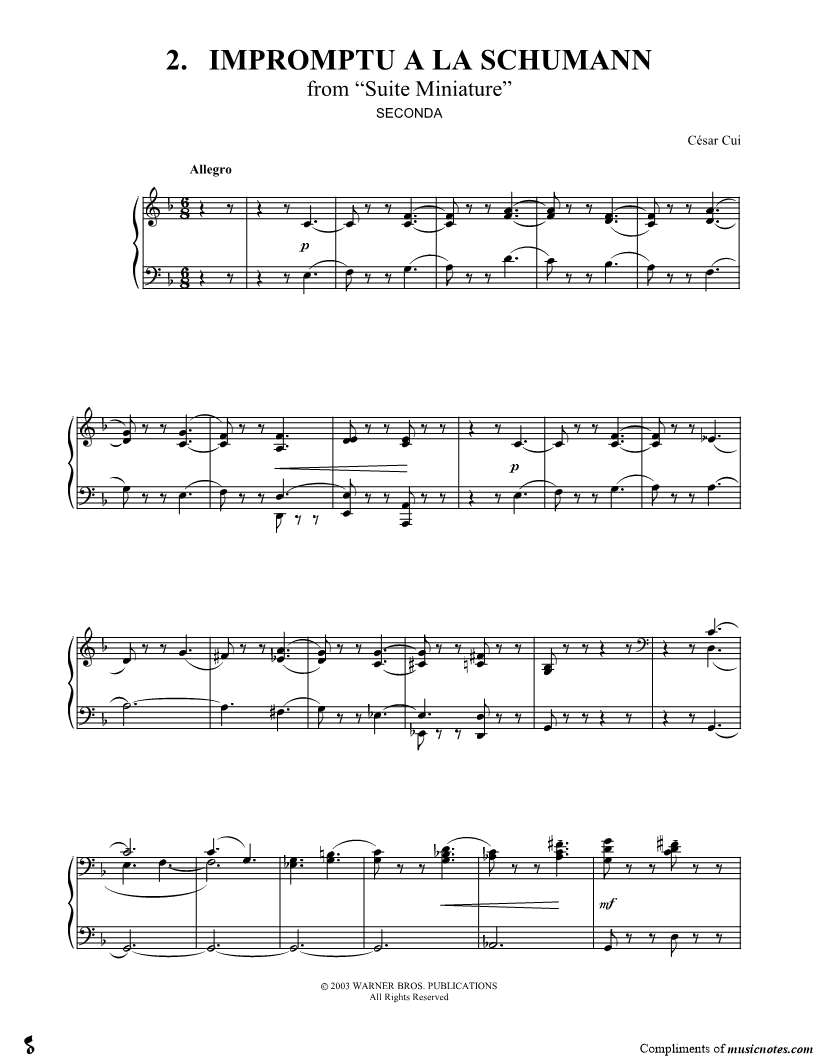 Collection: Suite Miniature Six pieces for one piano, four hands by Cesar Cui