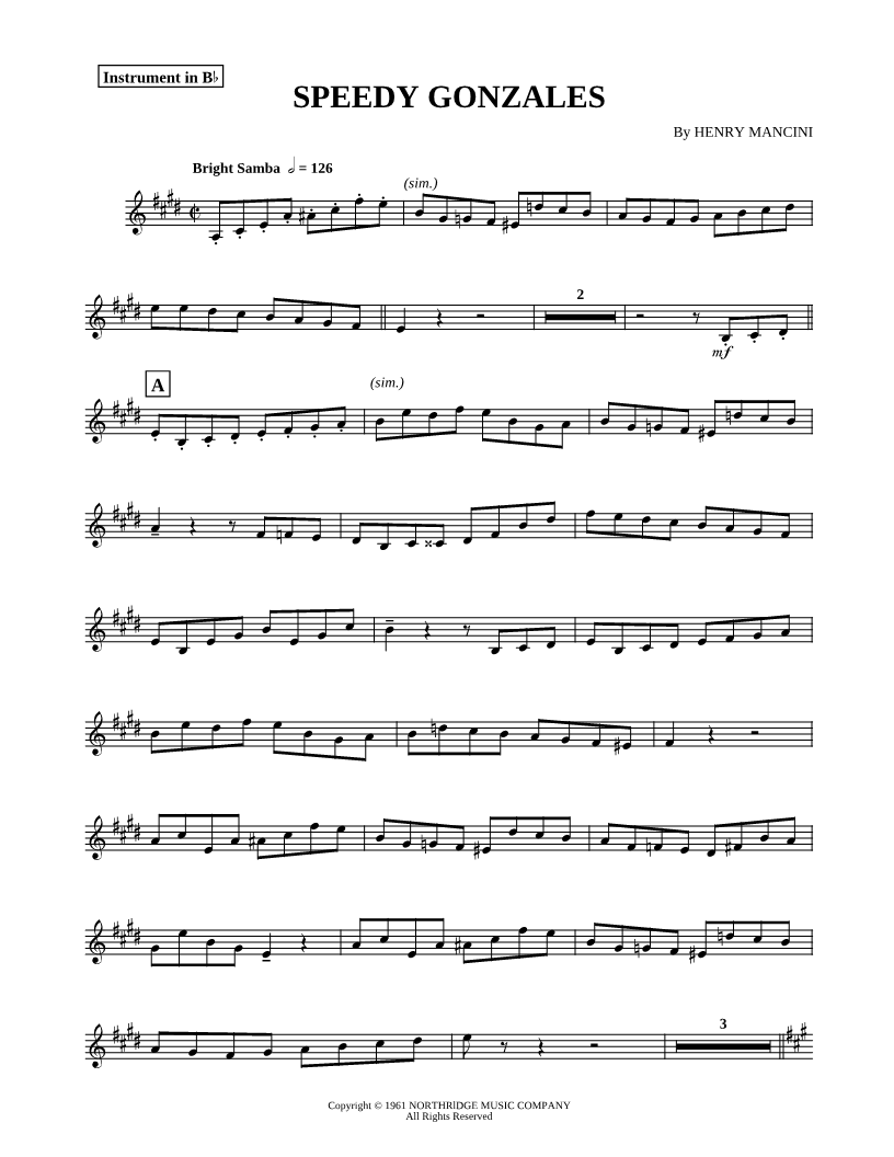 Bb Instrument 1, range: E#3-C#6 (Trumpet, Clarinet, Soprano Saxophone or Tenor Saxophone) | |