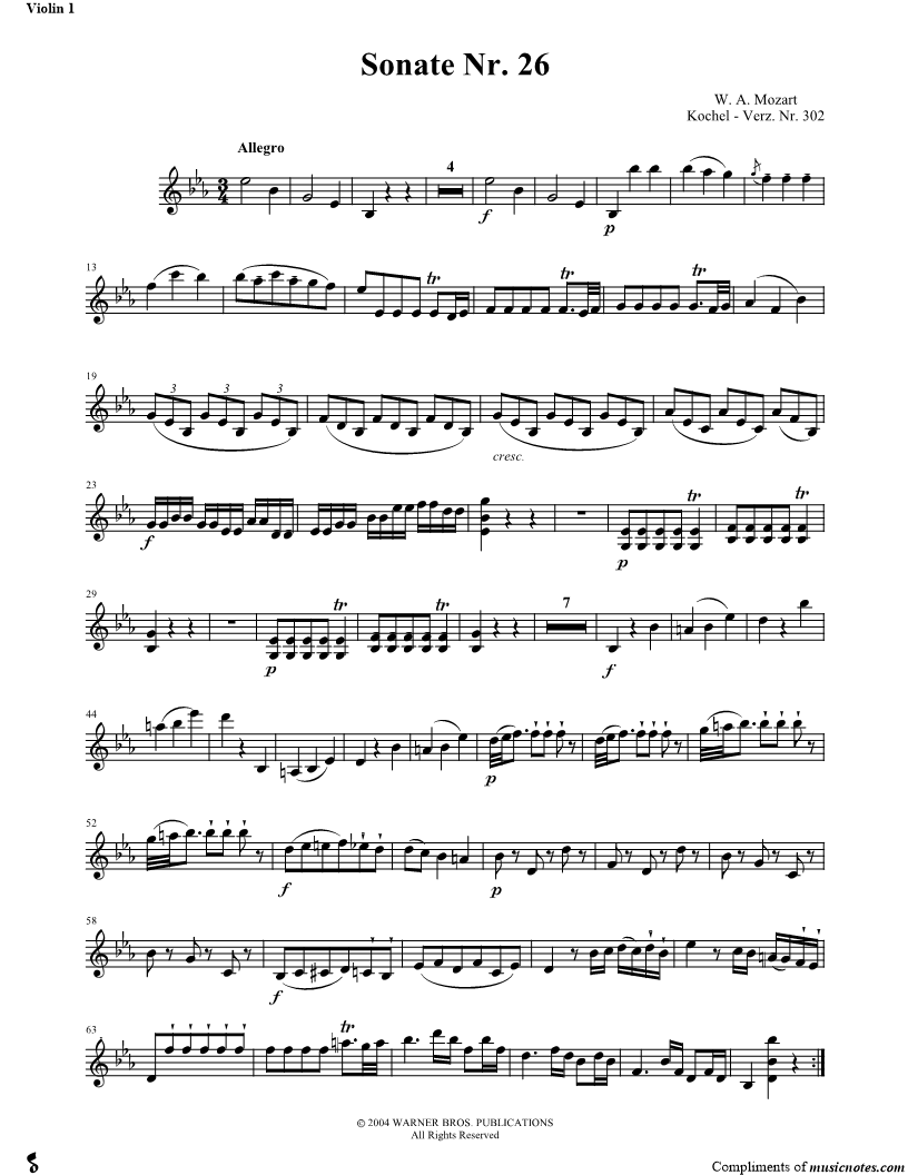 Sonata No. 26 for Piano and Violin, K. 302 |