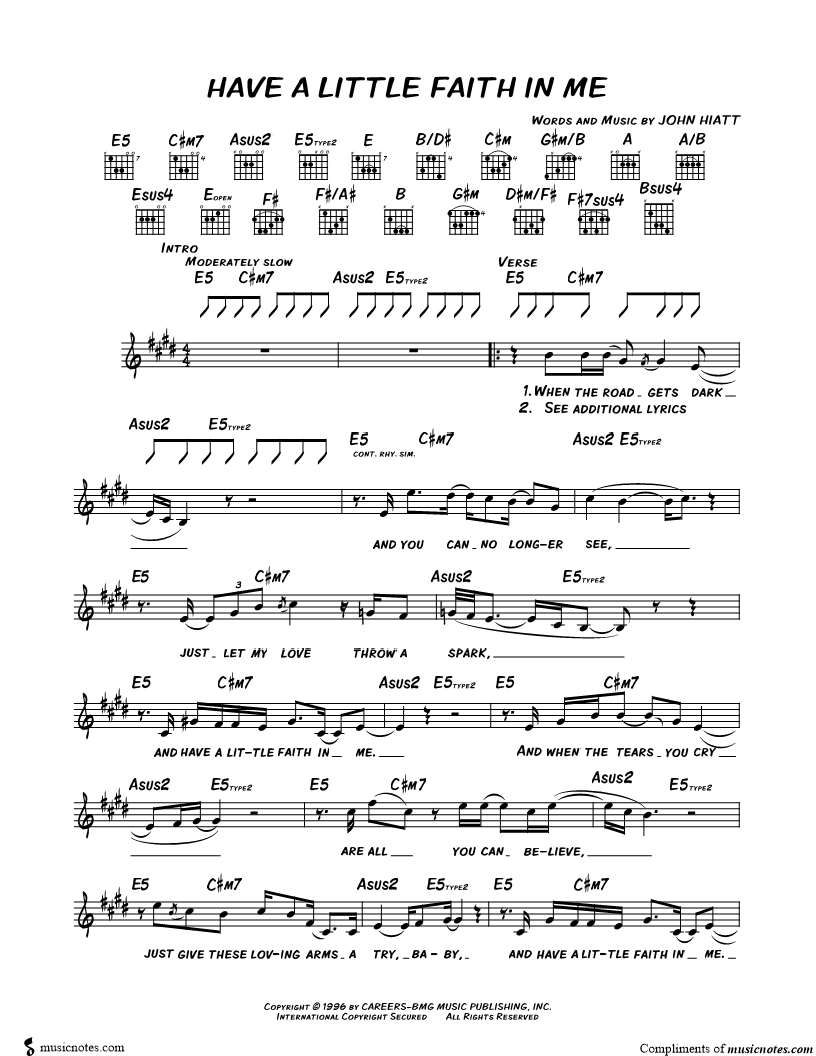 When the road gets dark and you can no longer see, just let my love throw a spark, and have a little faith in me. |