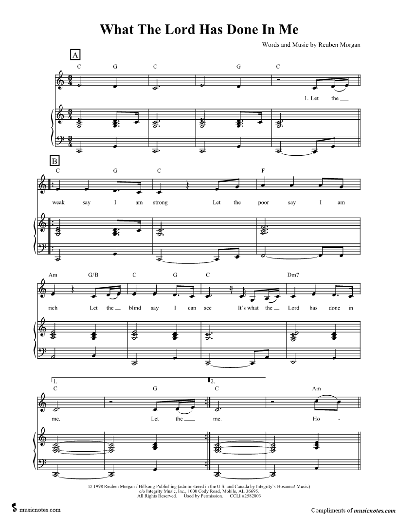 Let the weak say I am strong Let the poor say I am rich Let the blind say I can see It's what the Lord has done in me. |