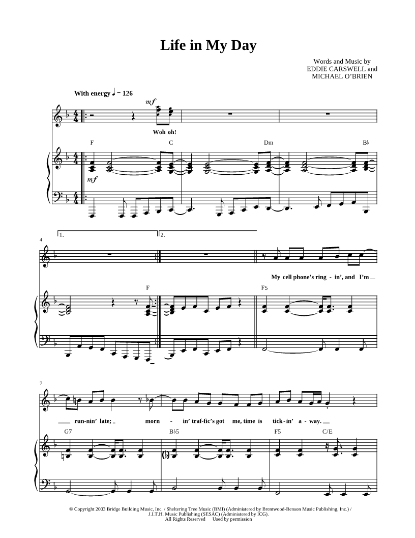 My cell phone's ringin', and I'm runnin' late; mornin' traffic's got me, time is tickin' away. |