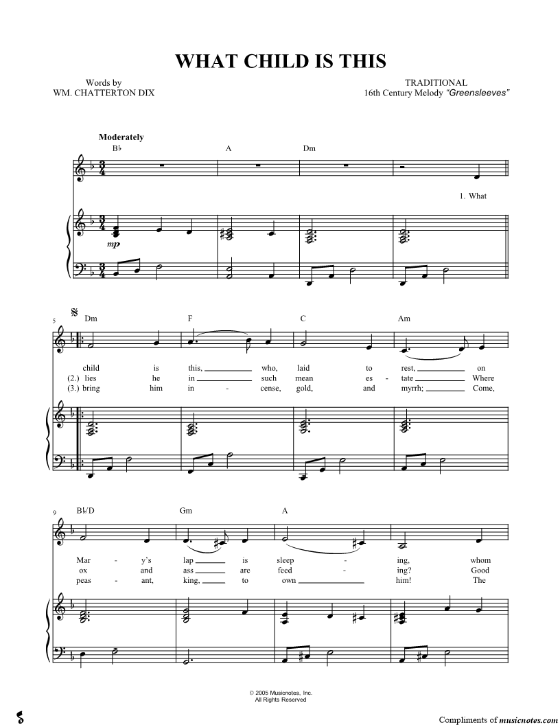 What child is this, who, laid to rest, on Mary's lap is sleeping, whom angels greet with anthems sweet while shepherds watch are keeping. |