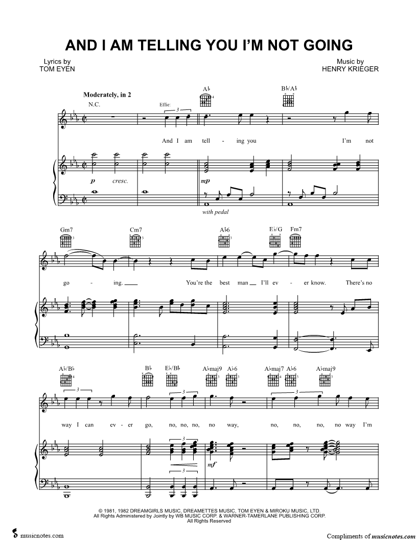 And I Am Telling You I'm Not Going Dream Girls/Vocal Selections |