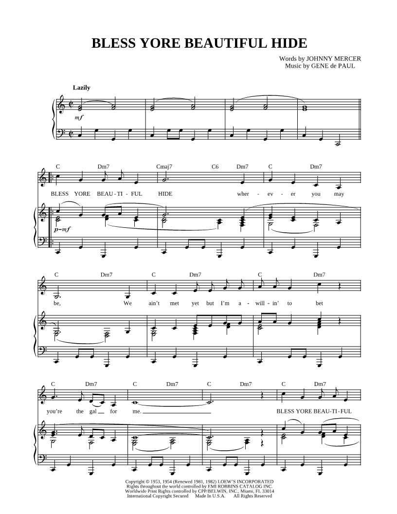 BLESS YORE BEAUTIFUL HIDE wherever you may be, we ain't met yet but I'm a willin' to bet you're the gal for me. |