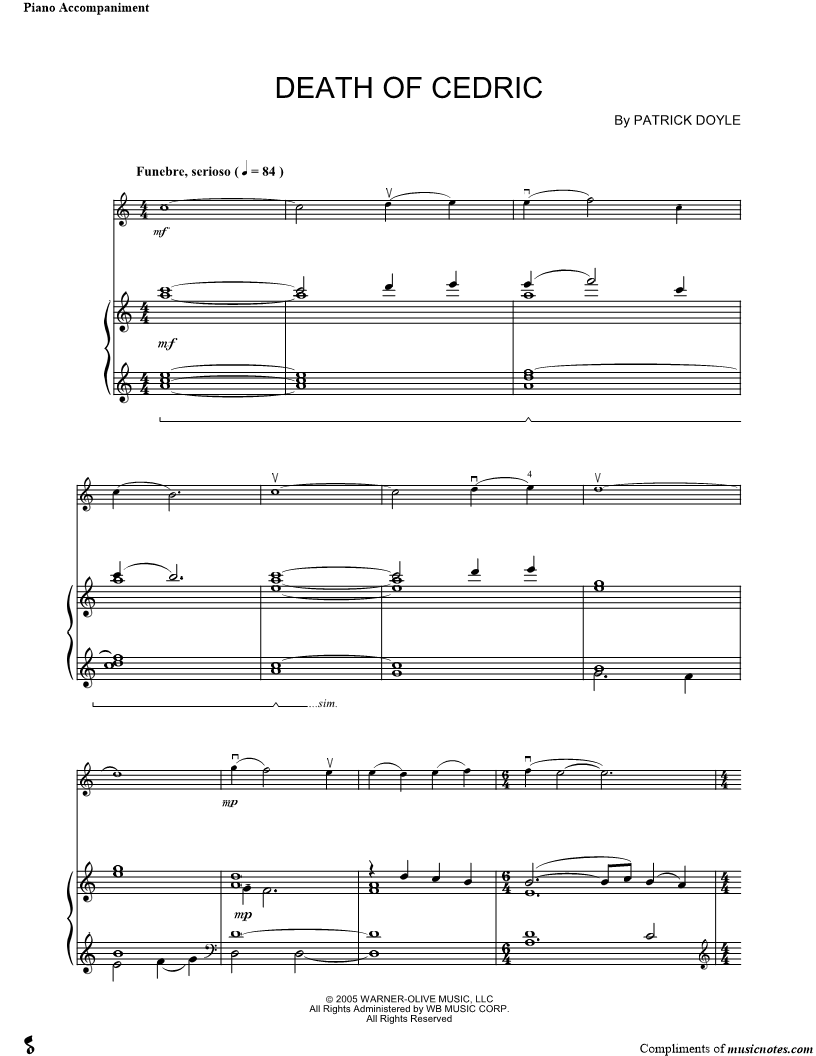 Collection: Death of Cedric - Violin & Piano for Violin and Piano Accompaniment