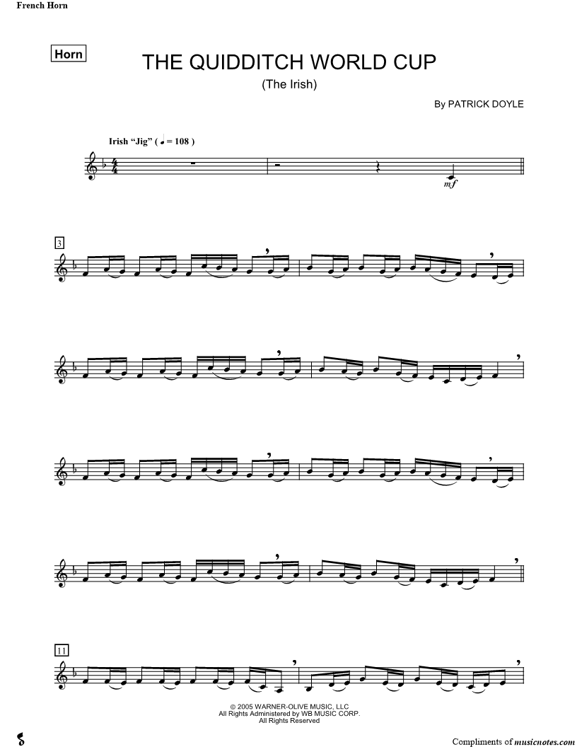 French Horn, range: F3-C5 | |