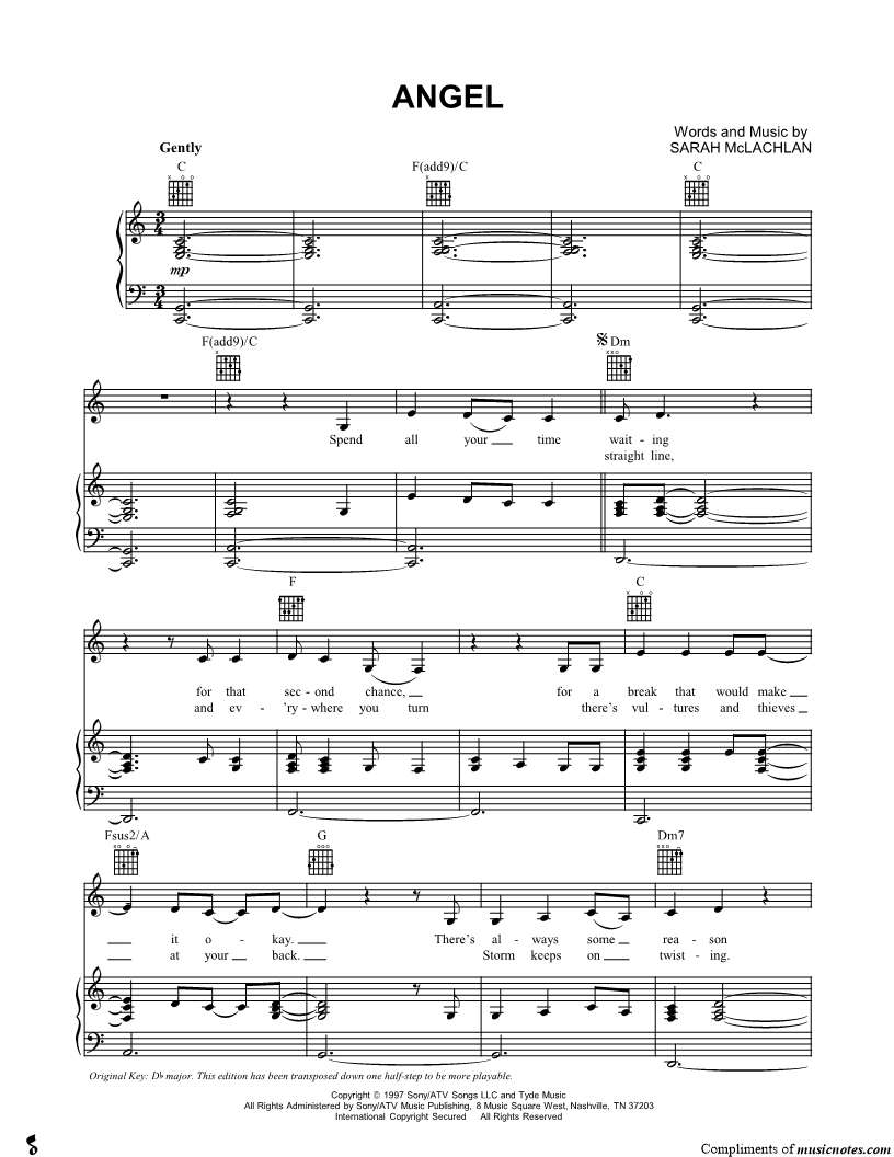 Angel Canadian Pop/Rock Piano Superstars Sarah McLachlan - Surfacing Sarah Mclachlan Collection Today's Woman Songbook Ultimate Pop/Rock |