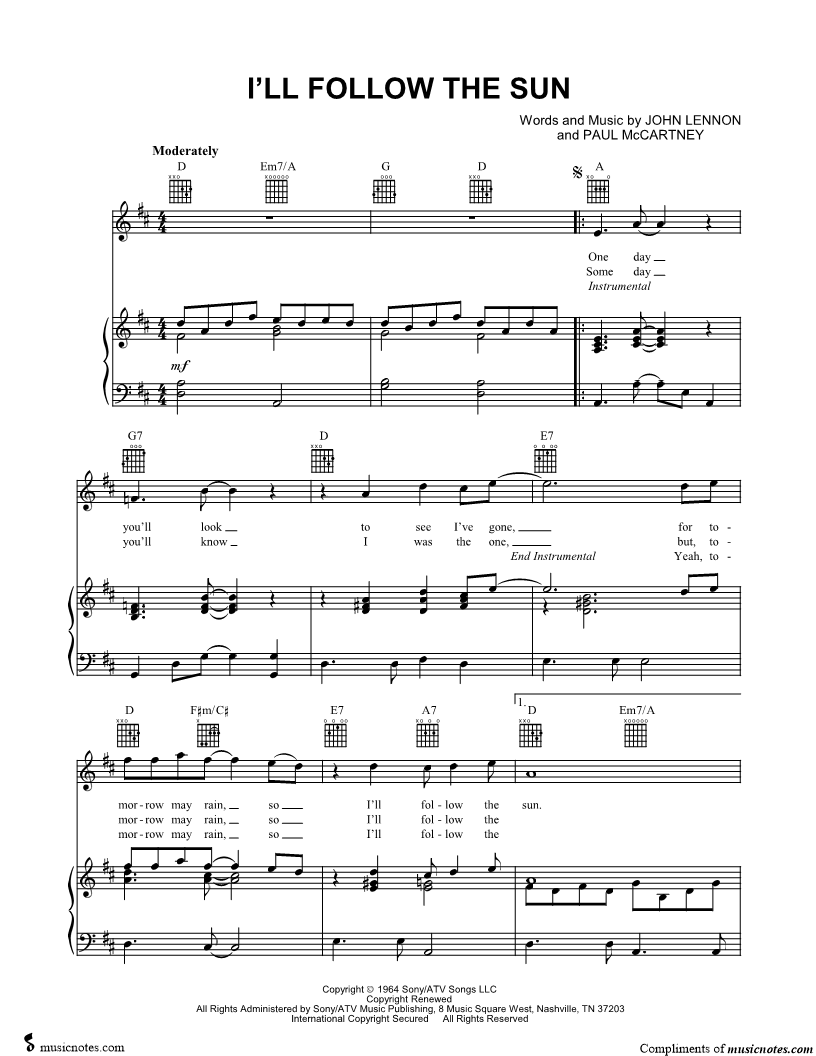 One day you'll look to see I've gone, for tomorrow may rain, so I'll follow the sun. |