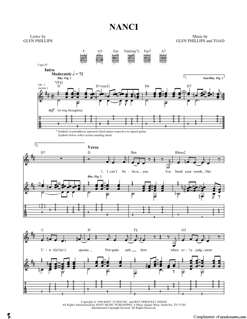 Voice 1, range: E3-C#5 Guitar 1, range: E3-G5 Guitar 2, range: E3-G5 Backup Vocals Strum | |