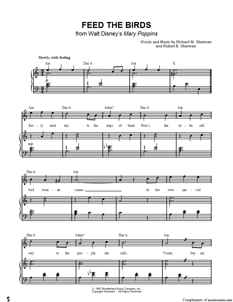 Early each day to the steps of Saint Paul's the little old bird woman comes. |