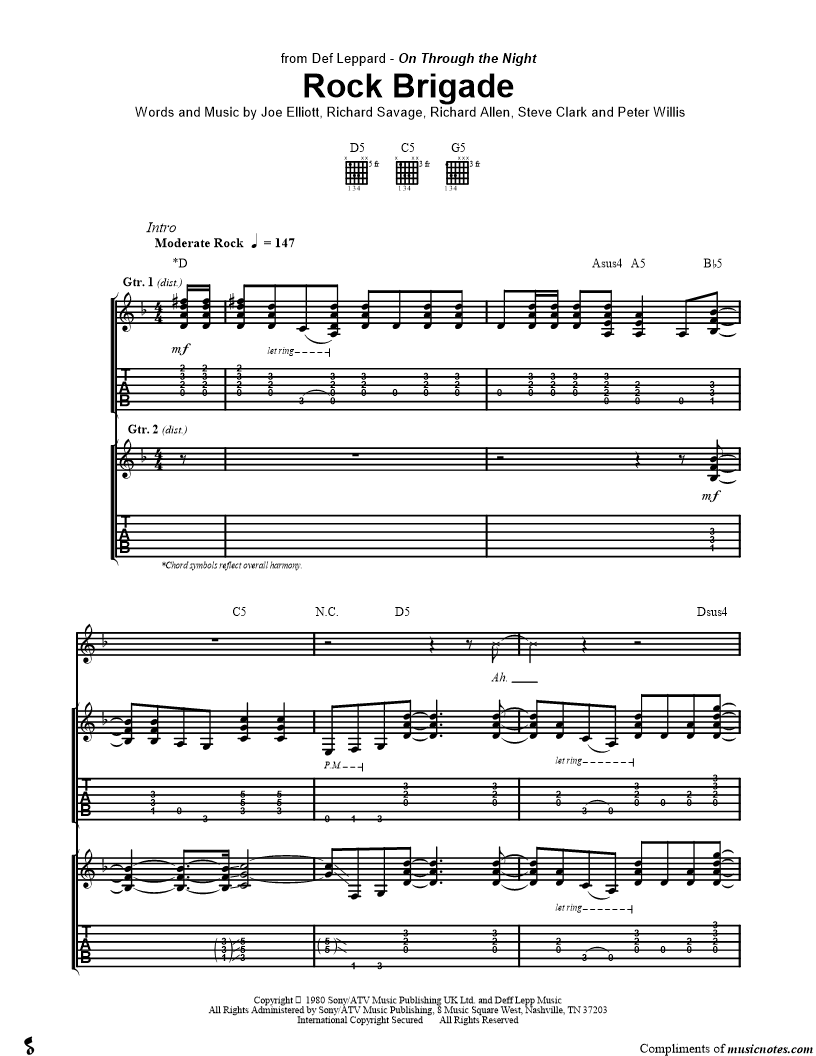 Voice, range: C5-A5 Guitar 1, range: C4-E6 Backup Vocals Guitar 2, range: E3-G5 Guitar 3, range: F3-G5 | |