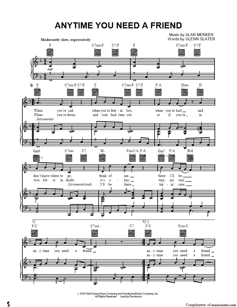 When you're sad, when you're feelin' low, when you're hurt and don't know where to go, think of me; there I'll be anytime you need a friend. |