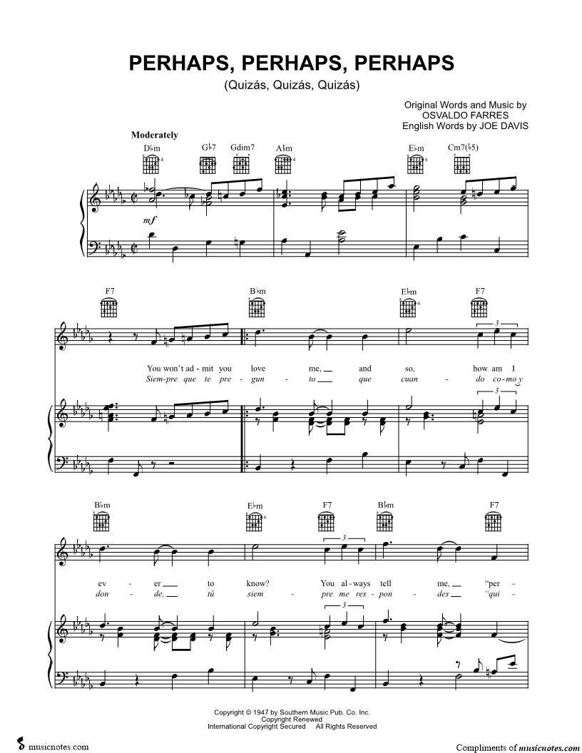 You won't admit you love me, and so how am I ever to know? you always tell me, "perhaps, perhaps, perhaps." |