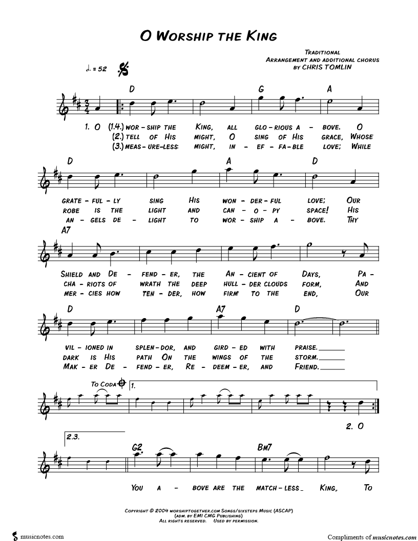 O worship the King, all glorious above. |