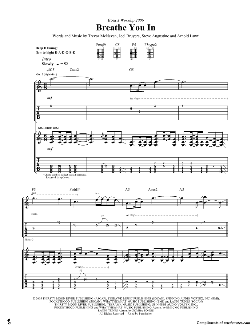 Voice, range: G4-C6 Guitar 1, range: E3-G6 Guitar 2, range: E3-C6 Guitar 3, range: E3-G5 Guitar 4 Guitar 5 Backup Vocals | |