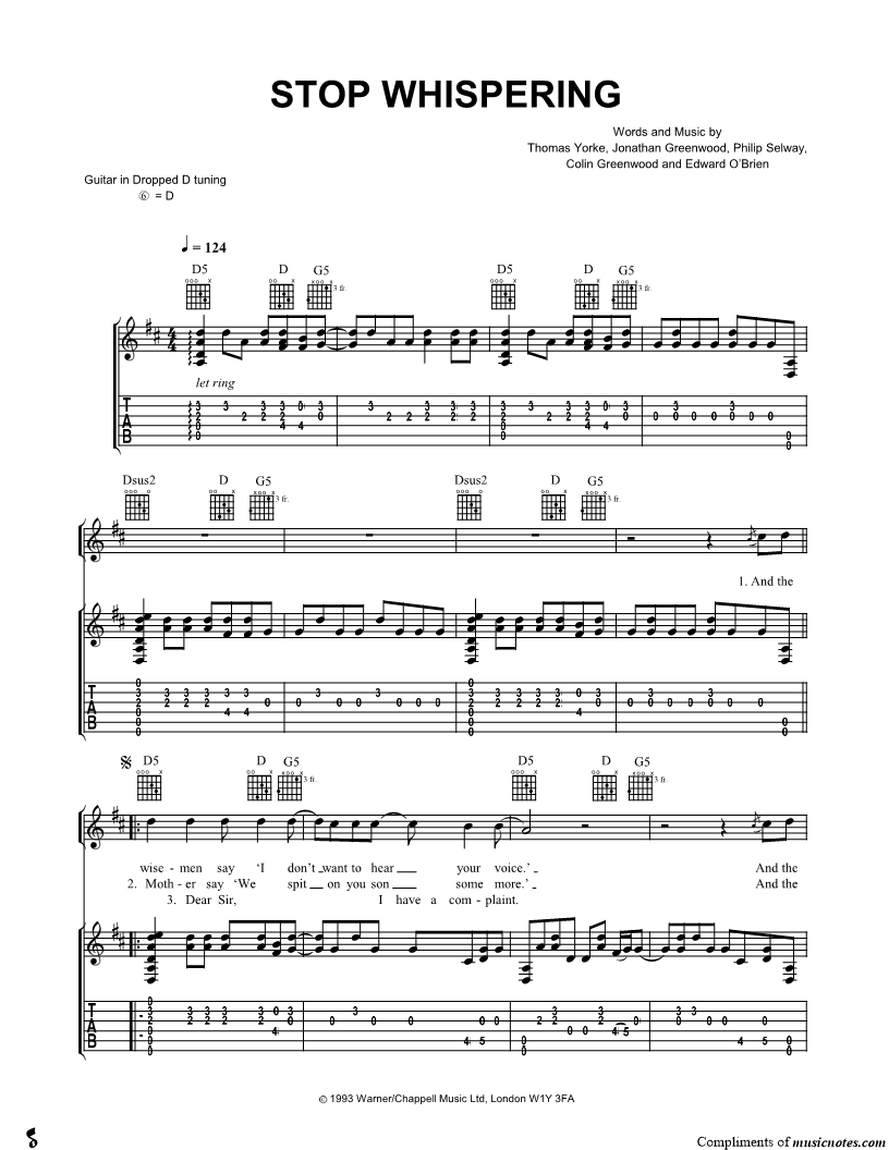 Guitar Tab Guitar/Vocal |