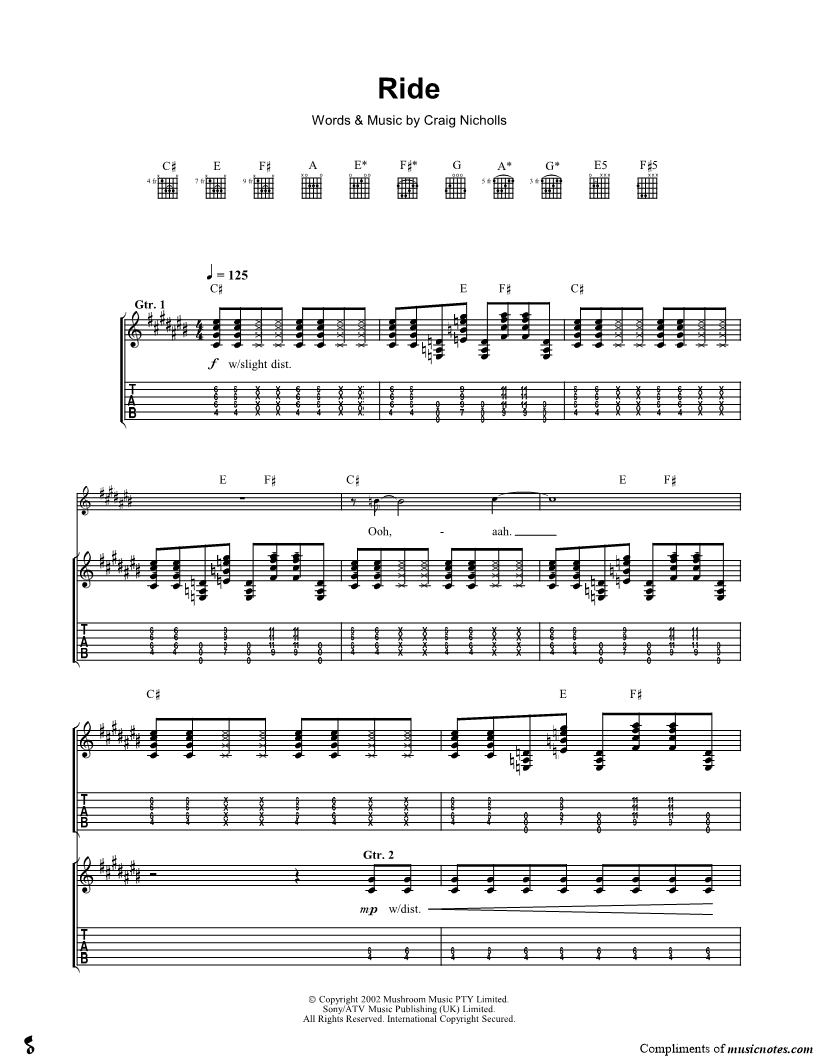 Guitar Tab Guitar/Vocal |