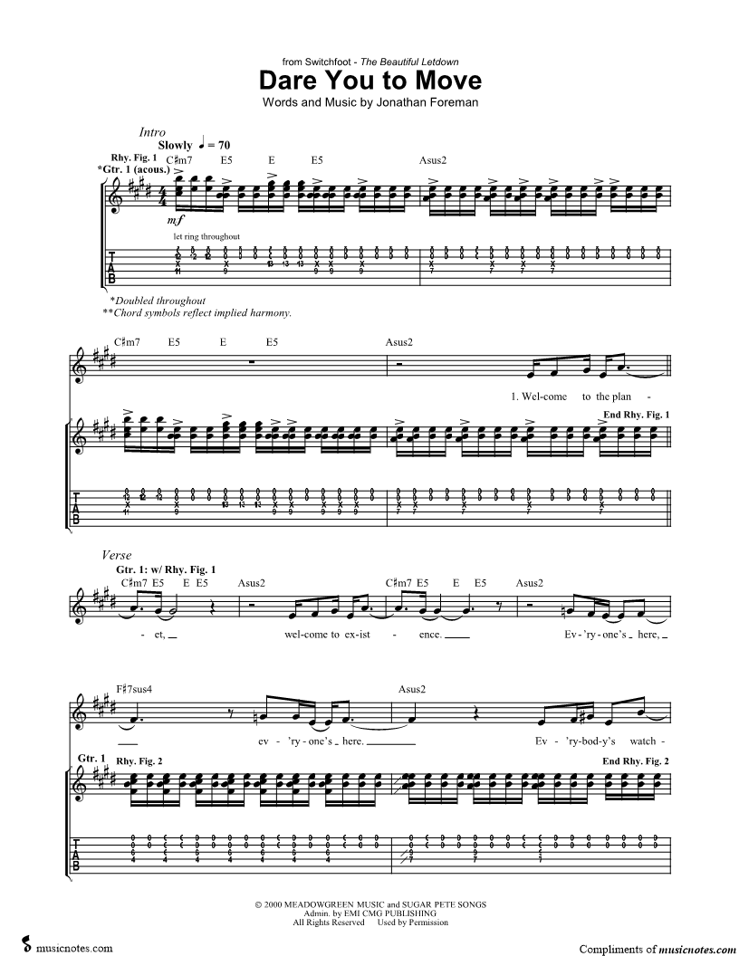 Voice, range: C#4-A5 Guitar 1, range: E3-D#6 Guitar 2, range: E3-B5 Guitar 3 Backup Vocals | |