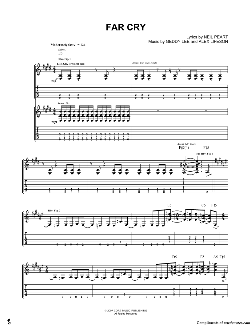 Voice, range: E4-B5 Guitar 1, range: E3-B5 Guitar 2, range: E3-C#5 Guitar 3 Guitar 4 Guitar 5 Guitar 6 Backup Vocals | |