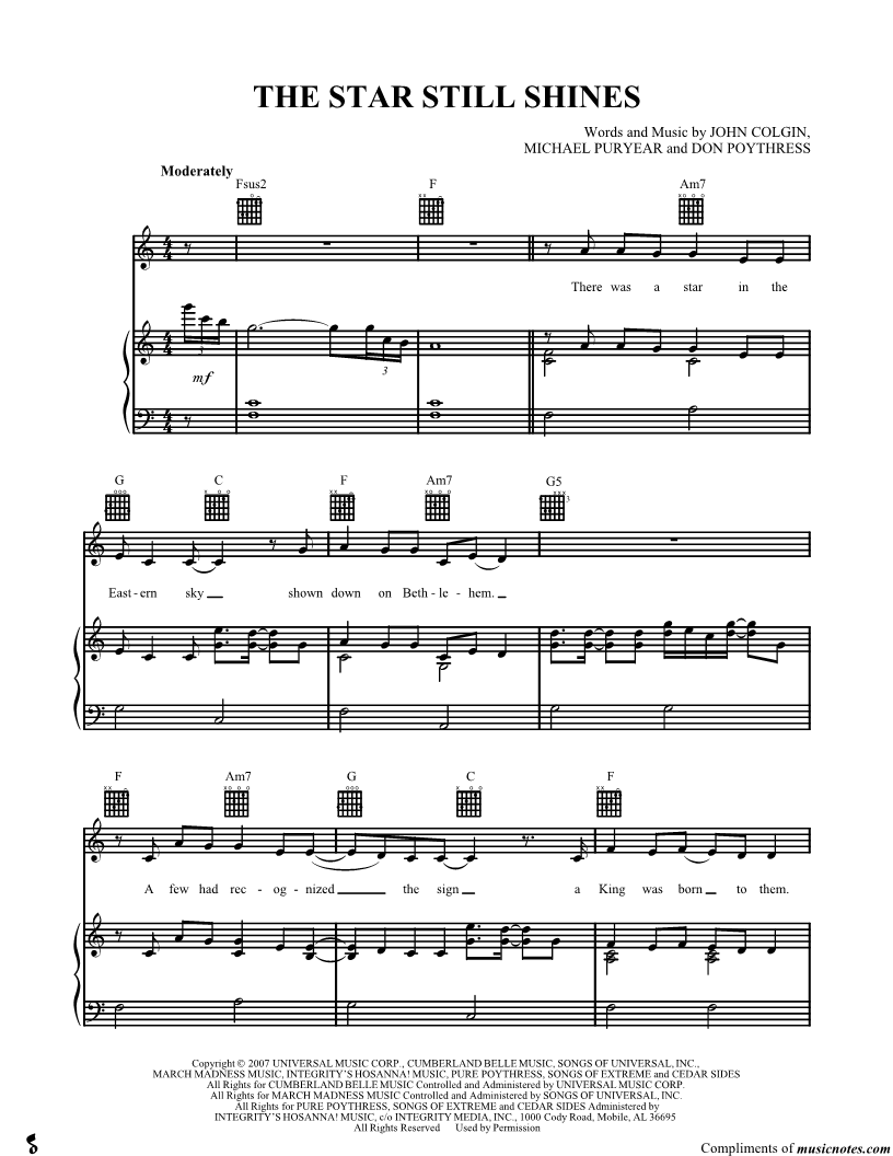 Musicnotes sells a wide variety of digital sheet music products including Singer Pros, Beginner Notes, Choral music, Piano Solos, Lead Sheets, Piano/Vocal/Guitar, Solo and Accompaniment, and fretted instrument tablature.
