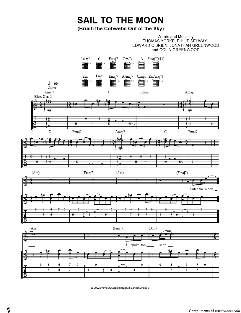 Guitar Tab Guitar/Vocal |
