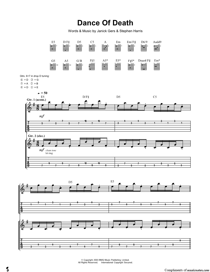 Voice, range: C3-E5 Guitar 1, range: E3-A7 Guitar 2, range: E3-D6 Guitar 3, range: A3-B5 Guitar 4, range: A3-G5 Guitar 5, range: D3-C5 Guitar 6 Guitar 7 Guitar 8 Guitar 9 | |