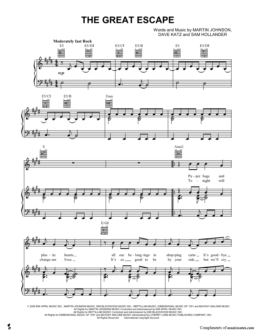 Musicnotes sells a wide variety of digital sheet music products including Singer Pros, Beginner Notes, Choral music, Piano Solos, Lead Sheets, Piano/Vocal/Guitar, Solo and Accompaniment, and fretted instrument tablature.
