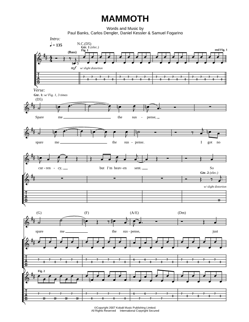 Guitar TAB Guitar/Vocal |