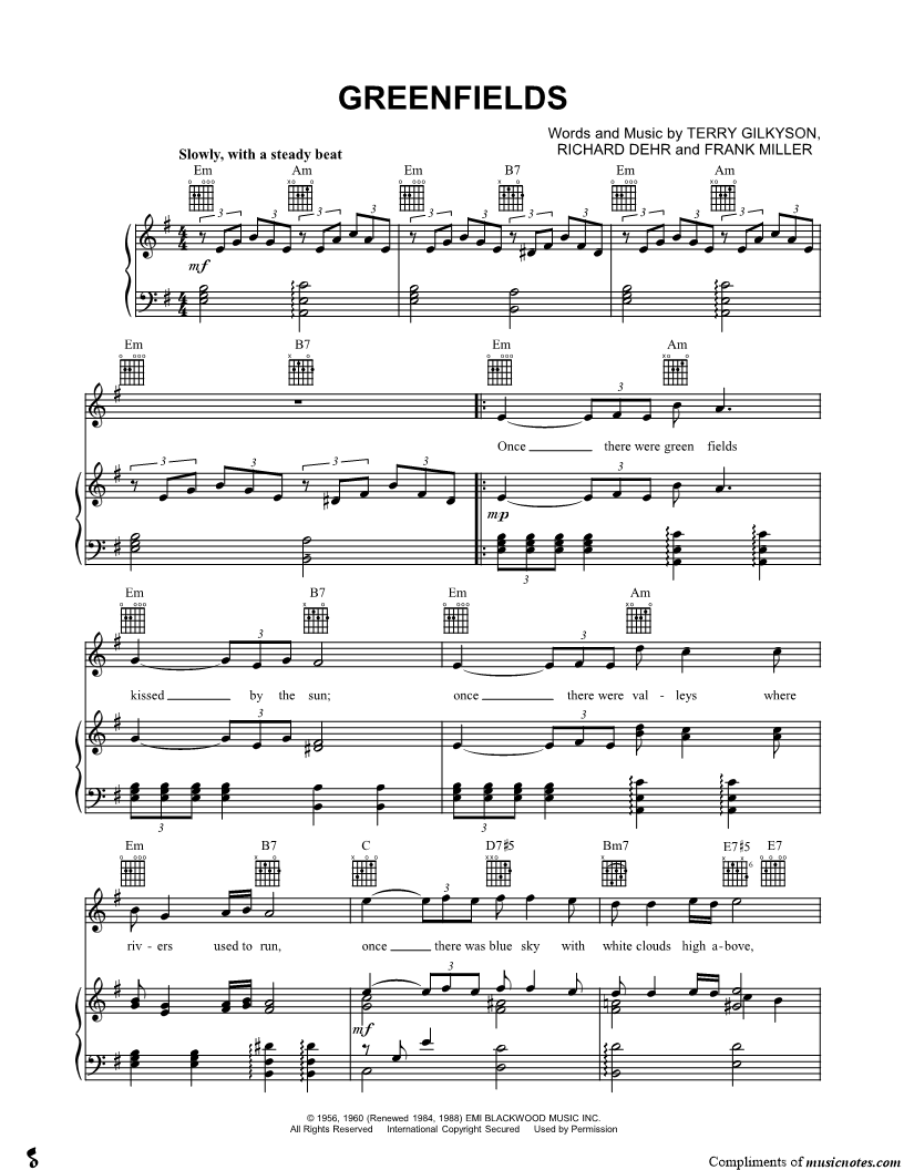 Once there were green fields kissed by the sun; once there were valleys where rivers used to run, |