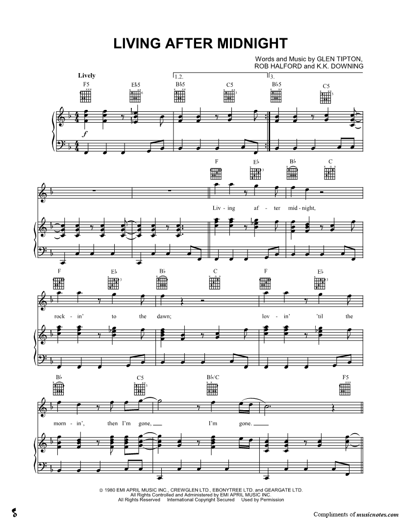 Living after midnight, rockin' to the dawn; lovin' 'til the mornin', then I'm gone, |
