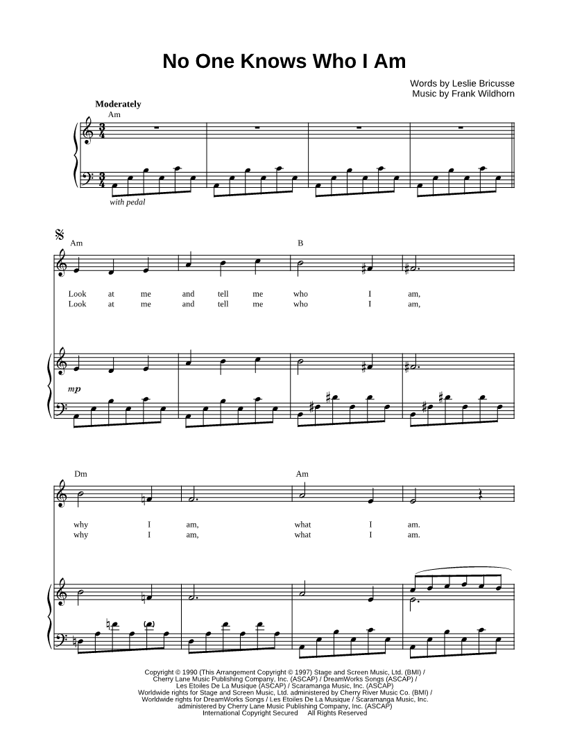 "Arrangement is decent, but there is a missing verse ("once there were sweet possibilities...." Read reviews