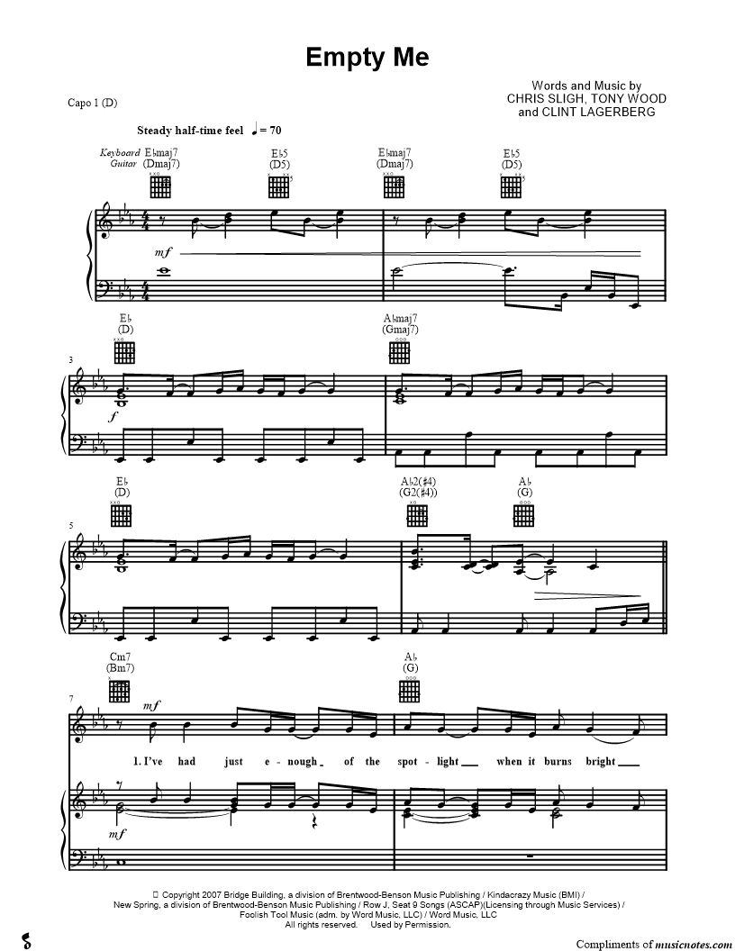 Musicnotes sells a wide variety of digital sheet music products including Singer Pros, Beginner Notes, Choral music, Piano Solos, Lead Sheets, Piano/Vocal/Guitar, Solo and Accompaniment, and fretted instrument tablature.